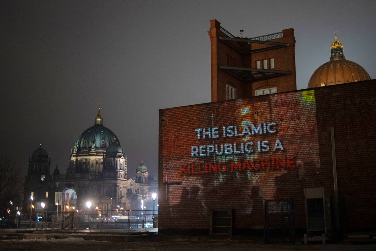 Berlin, 30. Januar – Als Reaktion auf die anhaltenden Massaker im Iran fand am Donnerstagabend eine mobile, interventionistische Projektionsaktion iranischer Aktivist*innen im Berliner Stadtraum statt. Mithilfe großflächiger Lichtprojektionen wurden Bilder und Botschaften zu den aktuellen Verbrechen des Regimes auf politische Gebäude sowie zentrale öffentliche Orte, unter anderem den Deutschen Bundestag, projiziert.
